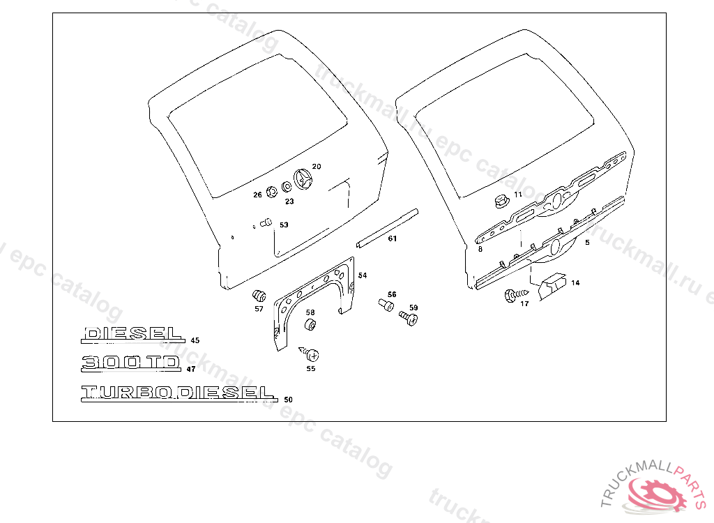 74 REAR PANEL DOOR - 045 REAR PANEL DOOR ATTACHMENT PARTS, REAR PANEL DOOR WINDOW IL. 1