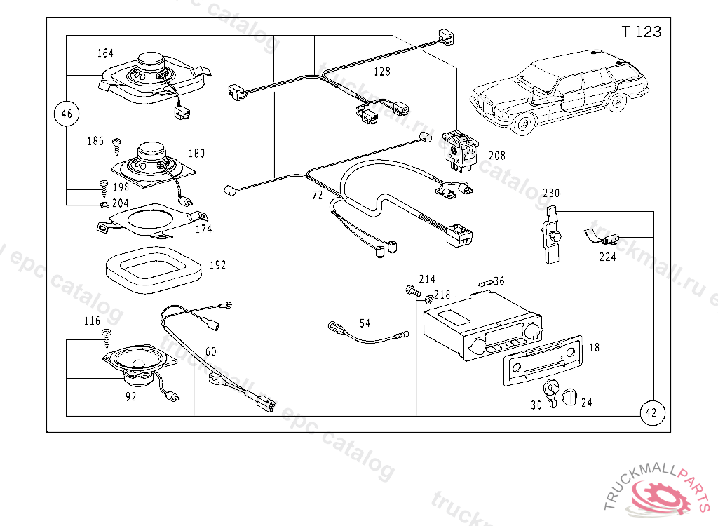 RADIO ACCESSORIES REAR LOUDSPEAKER, THE FOLLOWING PARTS ARE NOT INCLUDED IN RANGE OF DELIVERY: VCOVERING IN HOUSING