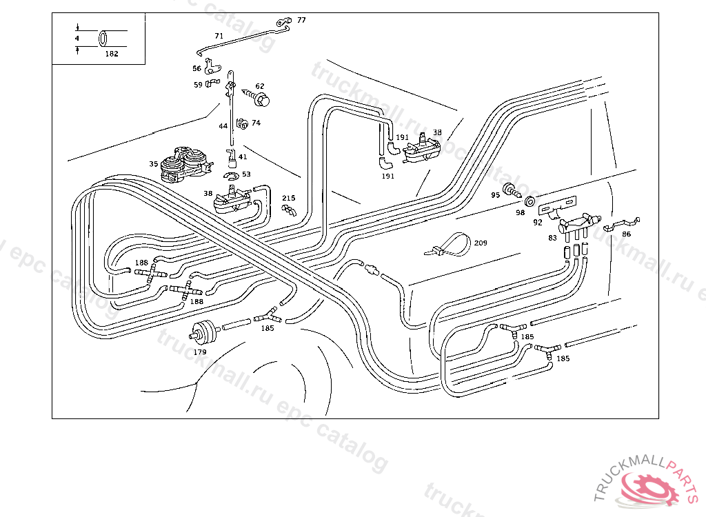 CONTROL ROD RIGHT FRONT DOOR VACUUM ELEMENT, 000 195484 003 105698 007 090654 086 007258 093 009522 102,103 254515 105 240287 183 016291 190 022604 193 003386 200 039775 280 001512 283 005420