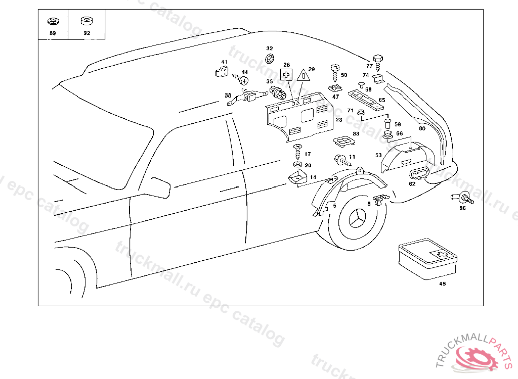 BRACKET SPARE WHEEL PANELLING, 086 007158 093 009202 183 015778 190 022262 193 002583 280 001077 283 004560