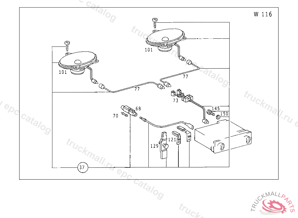 ELECTRIC CABLE LOUDSPEAKER CONNECTION CABLE, FROM CHASSIS 116.020 037452 116.024,025 039538 116.028,029 025862 116.032,033 034710
