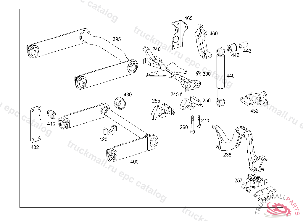 BRACKET TORSION BAR AND SHOCK ABSORBER,RIGHT, FOR COMPONENT PARTS SEE SPARE PARTS LIST