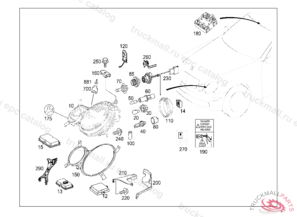 HEADLAMP UNIT RIGHT, BI-XENON LEFT-SIDE TRAFFIC, Replaced By: A2118205061