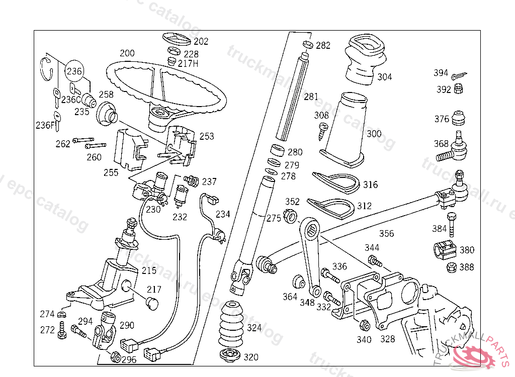 STEERING SHAFTLEMFOERDER, USED WITH SHORT MERCEDES-BENZ CAB