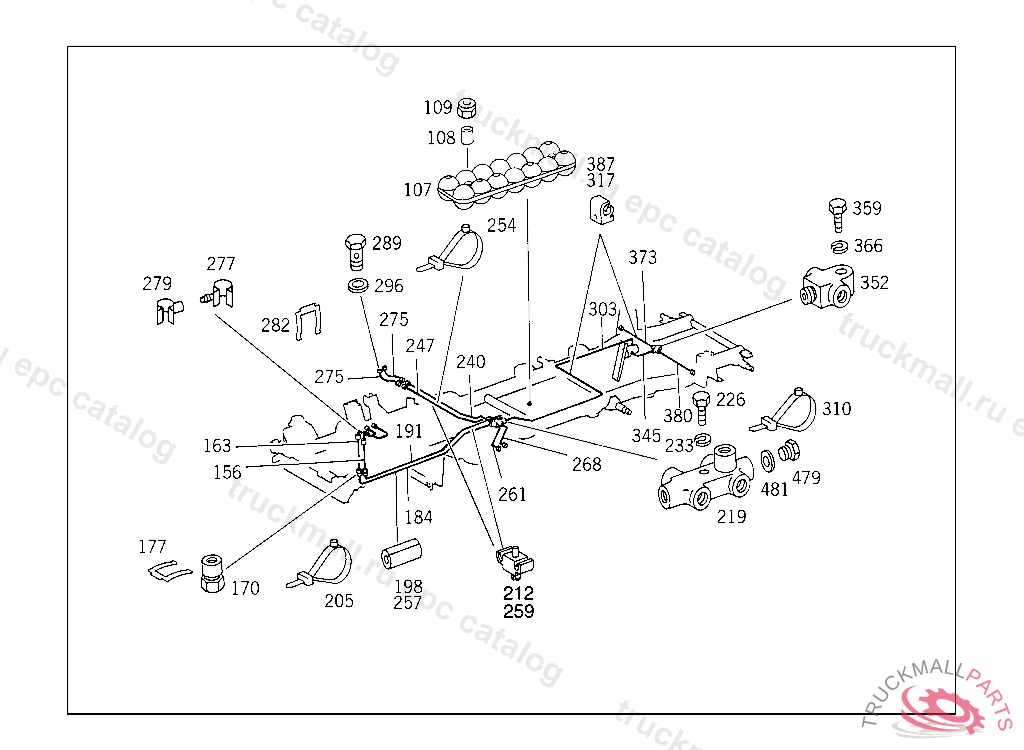 LINE TO RIGHT FRONT WHEEL, 000,001,010 UP TO CHASSIS 107476,100,101,110 UP TO CHASSIS 179099