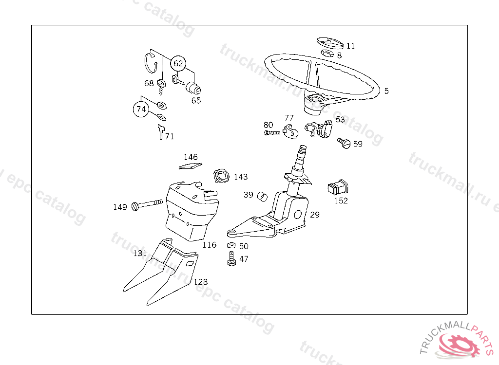 SHELL STEERING COLUMN PANELLING,REAR, USED WITH SHORT MERCEDES-BENZ CAB IINO.7B90 III
