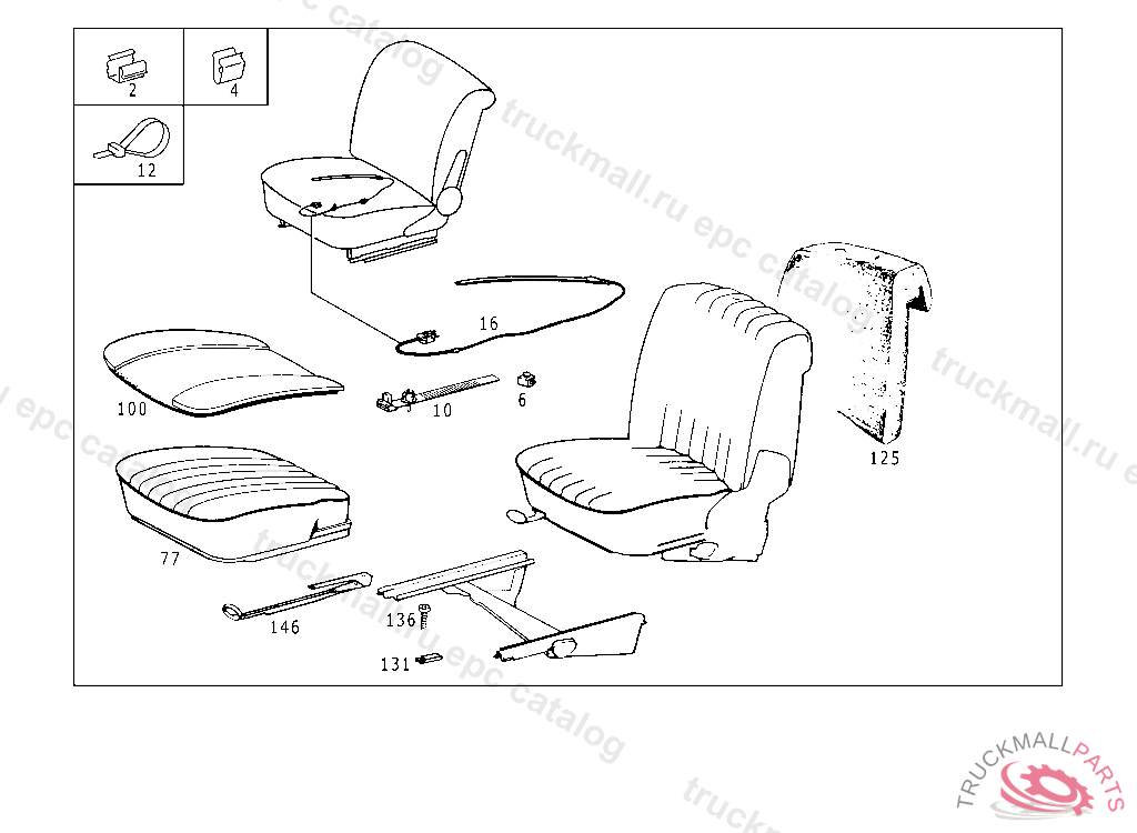 SEAT CUSHION , 116.020 UP TO CHASSIS 049944 ALSO INSTALLED ON 050113,EXCEPT FOR SEE FOOTN.7,116.032,033 UP TO CHASSIS 041787 ALSO INSTALLED ON 041848 EXCEPT FOR SEE FOOTN.8, ANTHRACITE NO. 7081 CODE 901,BLUE NO. 5050 CODE 902,TOBACCO NO. 8224 CODE 903,BAMBOO NO. 8225 CODE 904,PARCHMENT NO. 8226 CODE905,MOSS NO. 6059 CODE 906