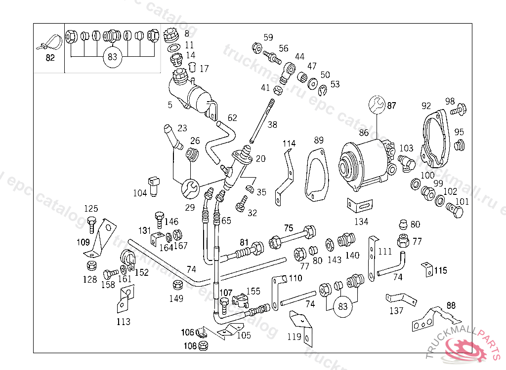 CLAMP DELIVERY AND SUCTION LINES TO ENGINE, TOP