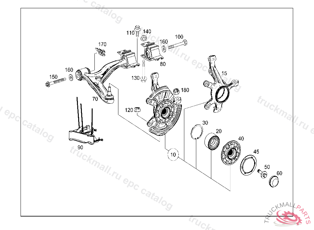 STEERING KNUCKLE FRONT RIGHT WITH SHAFT FLANGE AND COVER PANEL