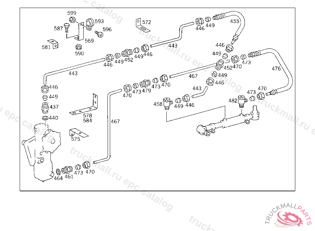 LINE STEERING-TO-POWER-CYLINDER DELIVERY LINE,REAR CONNECTION