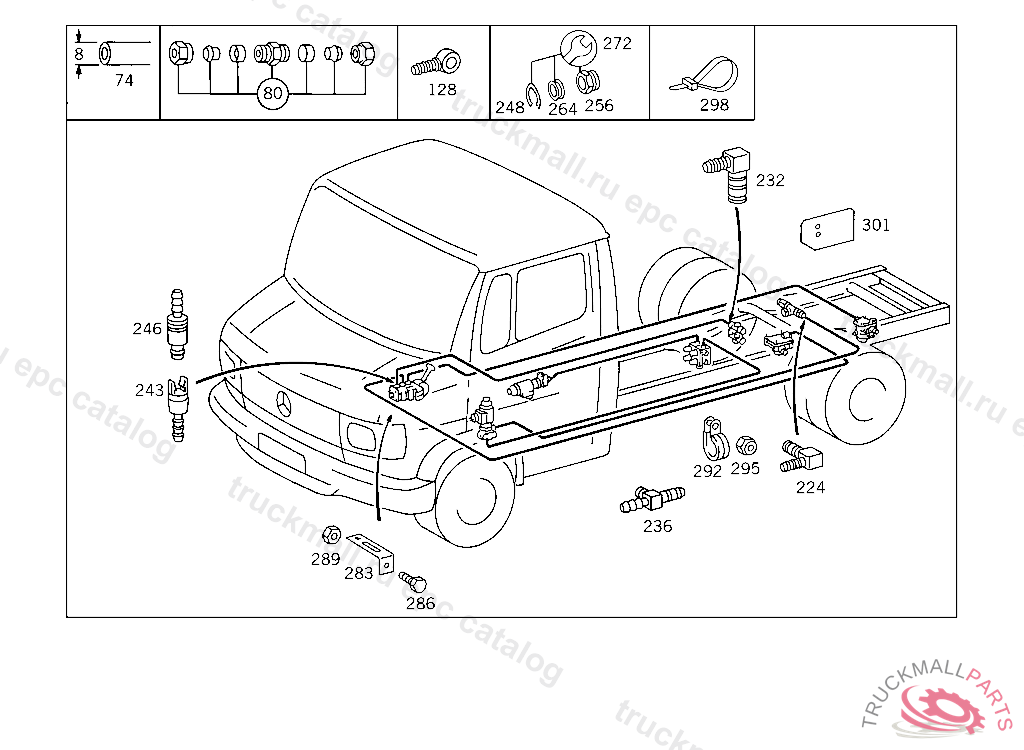 CLAMP DELIVERY AND SUCTION LINES TO ENGINE, FRONT