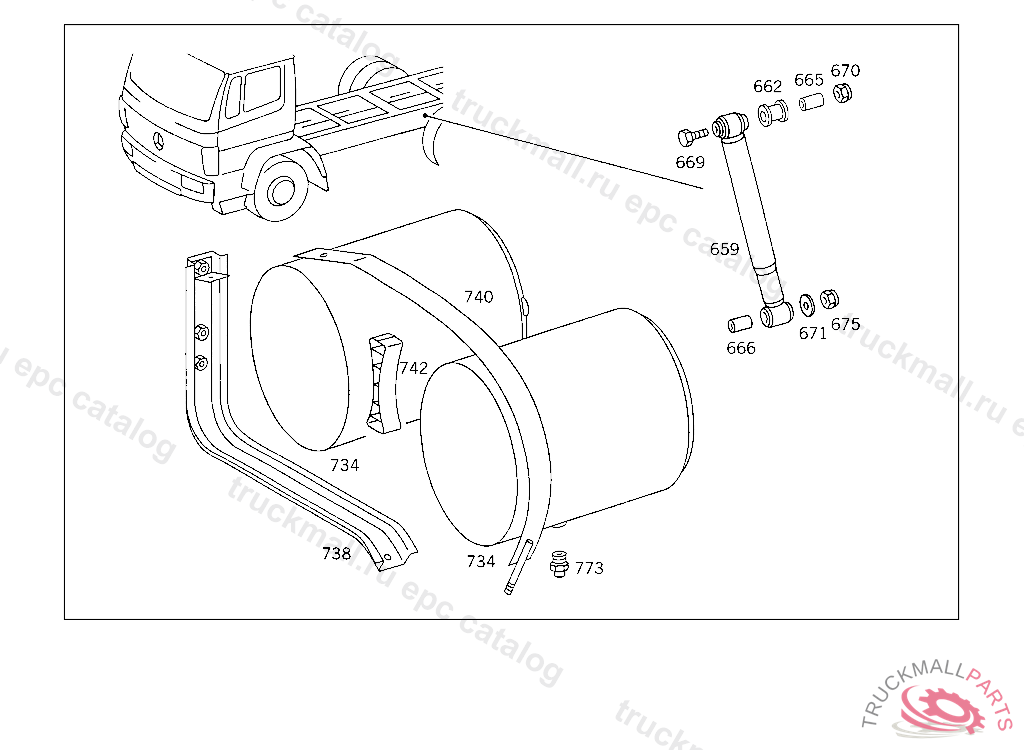 RESERVOIR COMPRESSED AIR 20 L, TO VOSS 232, FOR VEHICLES WITH VOSS 230 CONNECTOR: ADD. MOUNT FITTING "A 004 997 82 72" WITH O-RING "A 000 987 04 46" AND THRUST RING "A 000 997 02 03" TO AIR RESERVOIR