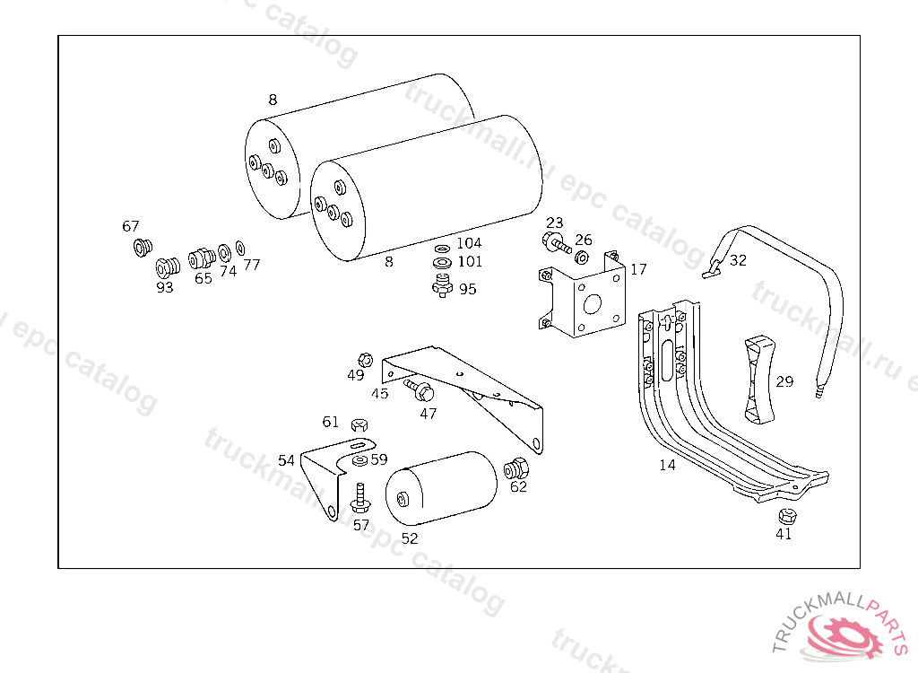 RESERVOIR COMPRESSED AIR 30 L, TO VOSS 232,5 9363665 812731 FOR VEHICLES WITH VOSS 230 CONNECTOR: ADD. MOUNT FITTING "A 004 997 82 72" WITH O-RING "A 000 987 04 46" AND THRUST RING "A 000 997 02 03" TO AIR RESERVOIR