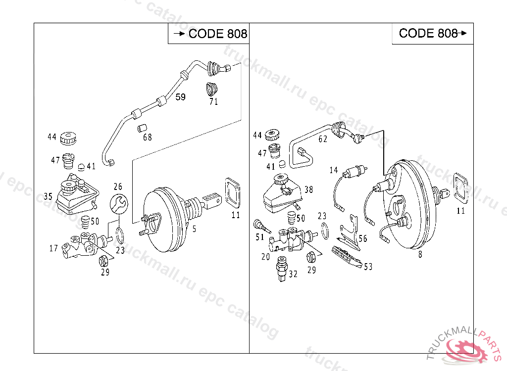 BRAKE MASTER CYLINDER , A 519674 F 619721 EXCEPT CODE 807 ALSO INSTALLED IN VEHICLE TO A 519673, F 619720 WITH CODE 808 A 809594 F 894083 EXEPT ON VEHICULES WITH CODE 800 ALSO INSTALLED IN VEHICLE FROM A 809595, F 894084 WITH CODE 809