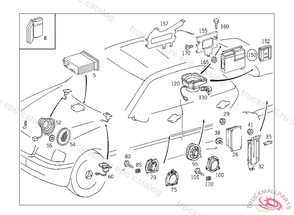 COVERING LOUDSPEAKER TO A-PILLAR, NO.7206 INO.7206 INO.7220 INO.5209 INO.1421 INO.7206 INO.7206 INO.7220 INO.7206 I