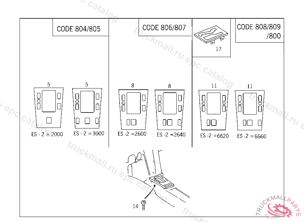 COVERING ATTENTION! PLEASE STATE THE ADDITIONAL CODE ES2,SEE ILLUSTRATION:, A 796968 F 887214 EXEPT ON VEHICULES WITH CODE 809 ALSO INSTALLED IN VEHICLE TO A 796967, F 887213 WITH CODE 800