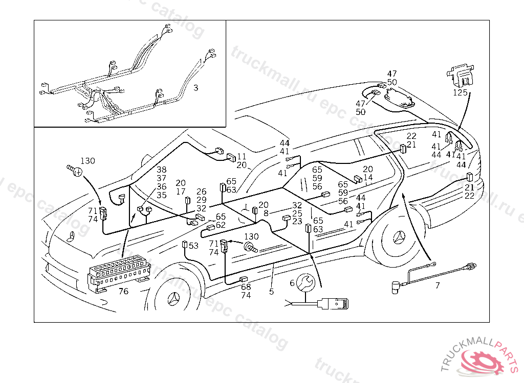 PLUG ENGINE CABLE HARNESS PLUG-CONNECTION TO FRAME MOUNTED CABLE HARNESS, A 698507 X 012425 EXCEPT CODE 809 ALSO INSTALLED IN VEHICLE FROM A 698508, X 012426 WITH CODE 808 EXCEPT A 654636, A 704016