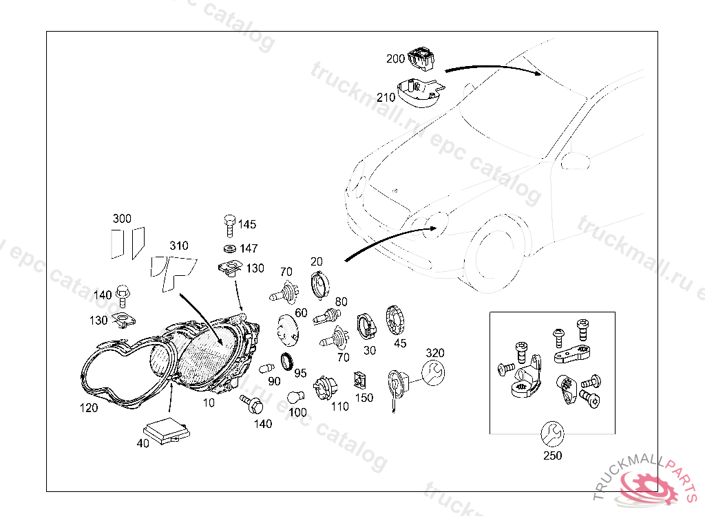 LIGHTING UNIT RIGHT, LEFT-HAND TRAFFIC, A 55589720030630804 A 97499920070630 E 06000020080801809