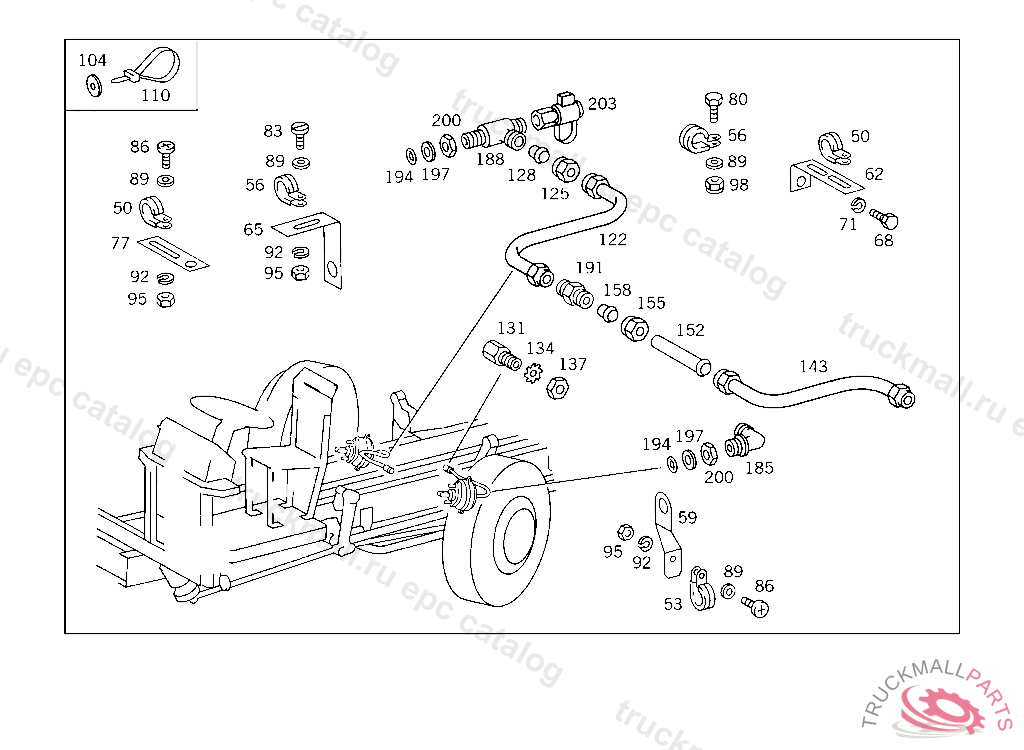 BRAKE HOSE FROM COMPRESSED AIR LINE TO REAR WHEEL BRAKE CYLINDER,D 030552