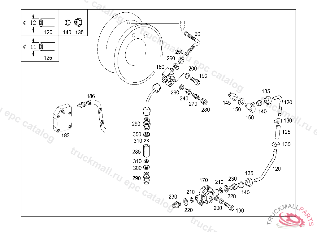 HOSE FRONT AND REAR AXLE BRAKE CYLINDERS 11 MM