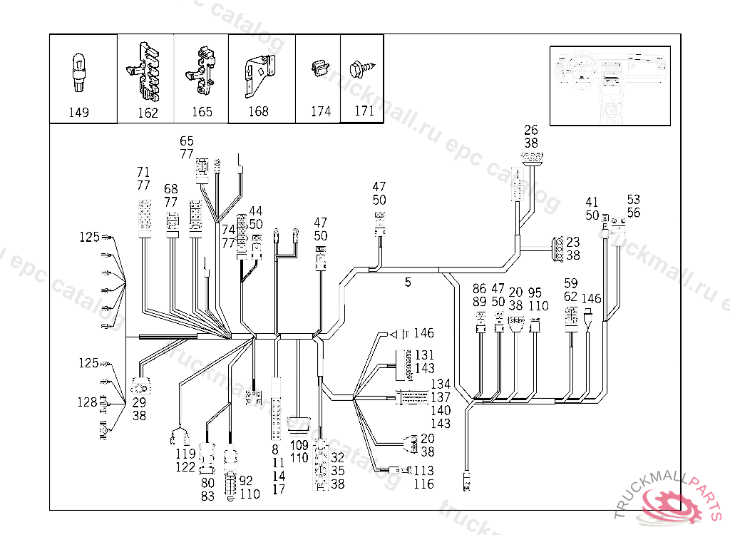 CABLE HARNESS COCKPIT CABLE HARNESS USED WITH TEMPMATIK, A 394036 X 001165 EXCEPT CODE 807 ALSO INSTALLED IN VEHICLE TO A 394035 WITH CODE 808
