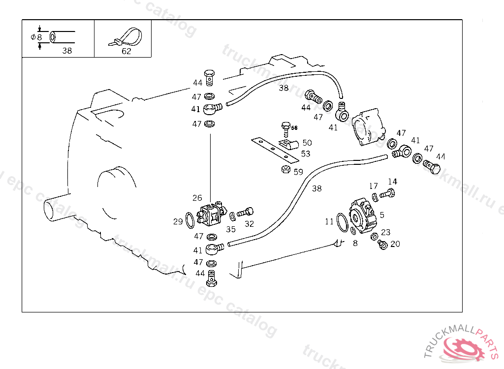 BRACKET HOSE TO TRANSMISSION CASE, 717.214 009286 717.210-213,219 TO 620 260 45 03,620 260 47 00,620 260 48 00,620 260 49 00,620 260 78 00,620 260 45 00 717.220-223,229 TO 620 260 86 00,620 260 28 01