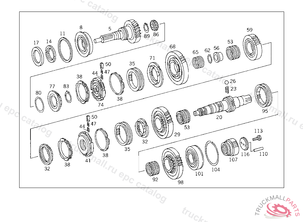26 TRANSMISSION - 150 TRANSMISSION SHAFTS AND GEARS IL. 1