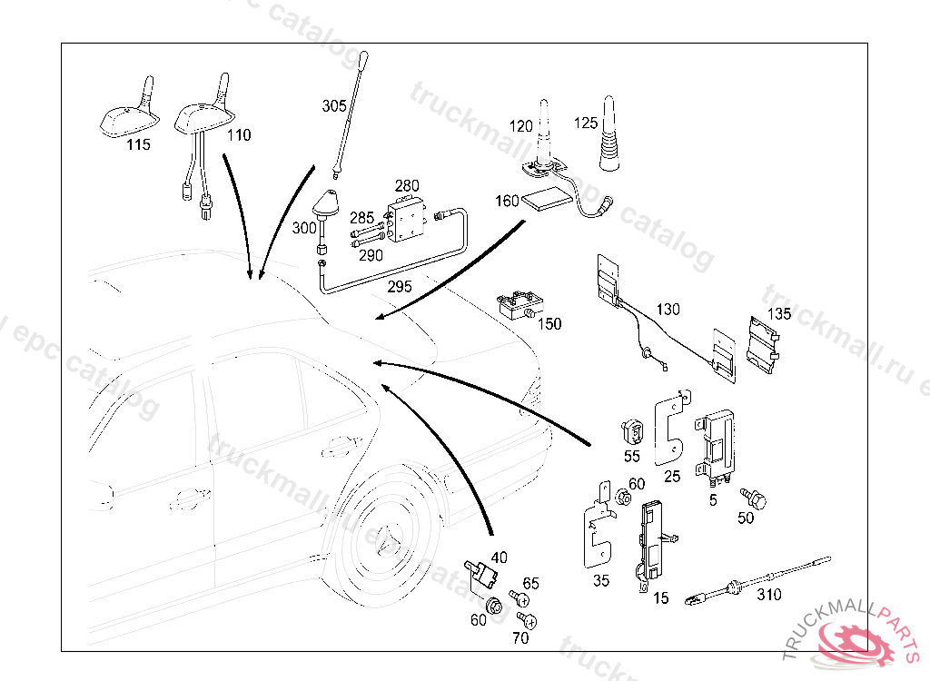 INTERMEDIATE LAYER ANTENNA COMBINER TO LATERAL LEFT COVERING IN LUGGAGE COMPARTMENT