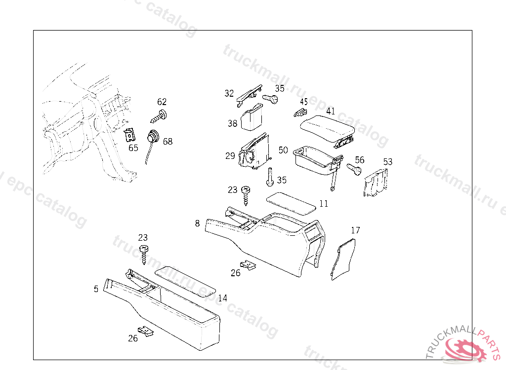 68 COVERING - 260 HOUSING WITH TRAY, ARMREST, AND ASHTRAY IL. 1
