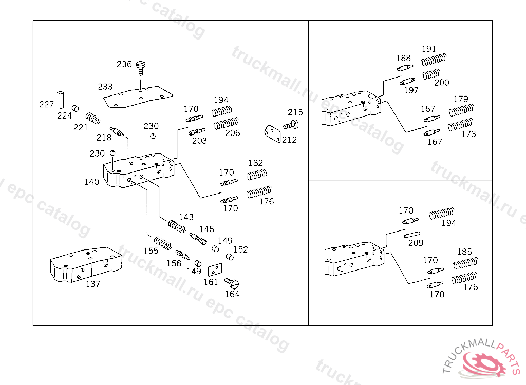 27 MERCEDES-BENZ AUTOMATIC TRANSMISSION - 550 VALVE BODY ASSY.: OIL SEPARATOR PLATE, PISTON,RETARDER CONTROL PRESSURE IL. 3