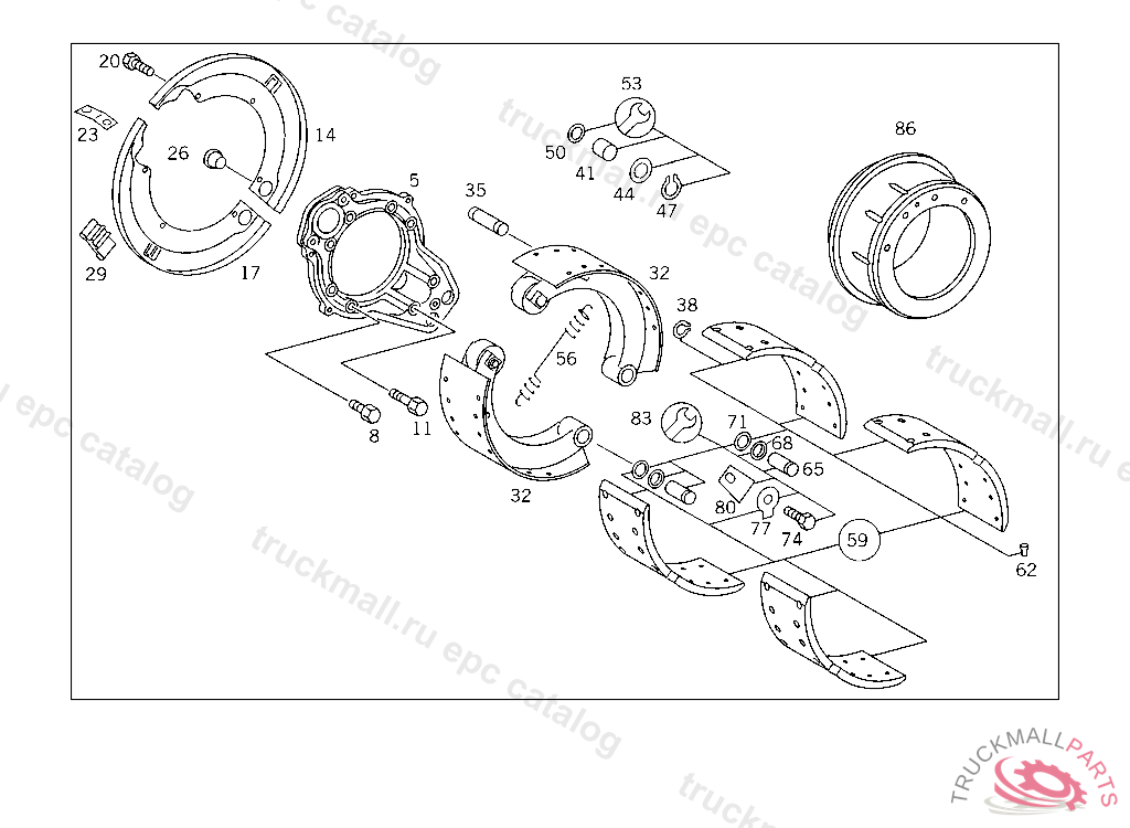 BRAKE SHOE , FIRST EXHAUST STOCK OF OLD PARTS UP TO FRONT AXLE E 128437, Replaced By: A3934202519