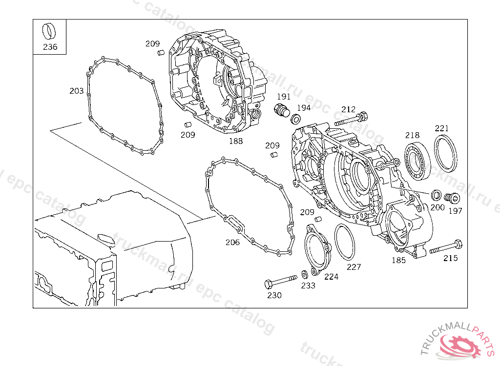 TRANSMISSION CASE REAR, ON VEHICLES HAVING NO MERCEDES BENZ BODY FROM IDENT NO. 089694 FOR USE WITH MERCEDES-BENZ BODY FROM IDENT NO.: 090719