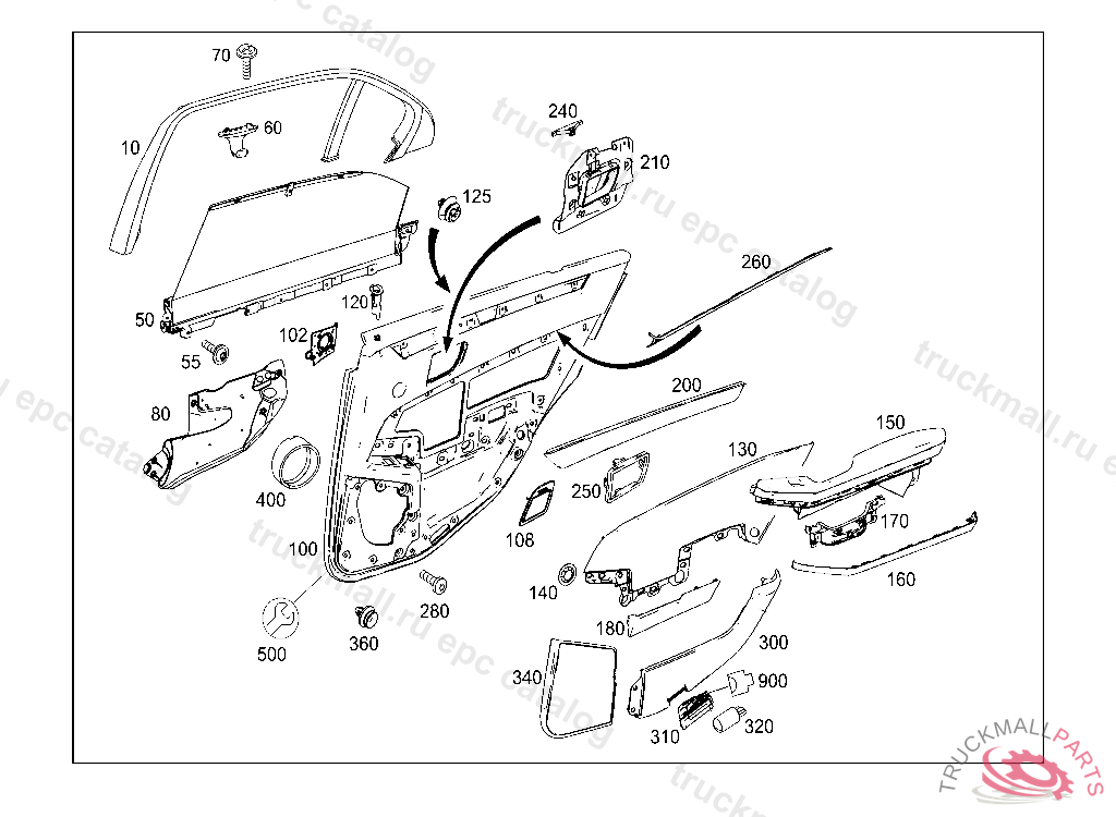 ARMREST RIGHT REAR DOOR PANELING, Replaced By: A2127304594, +001A2049055502