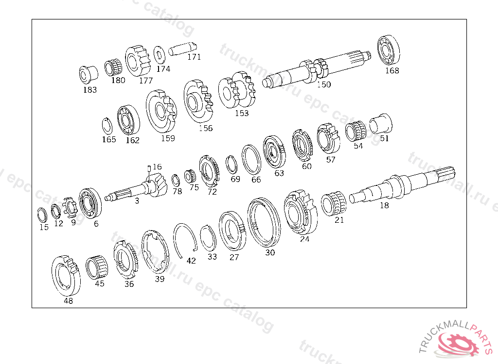 COUNTERSHAFT , EXHAUST STOCK OF OLD PART NUMBERS FIRST UP TO TRANSMISSION 714.640 035980 714.650,651 043451, Replaced By: A3872632702