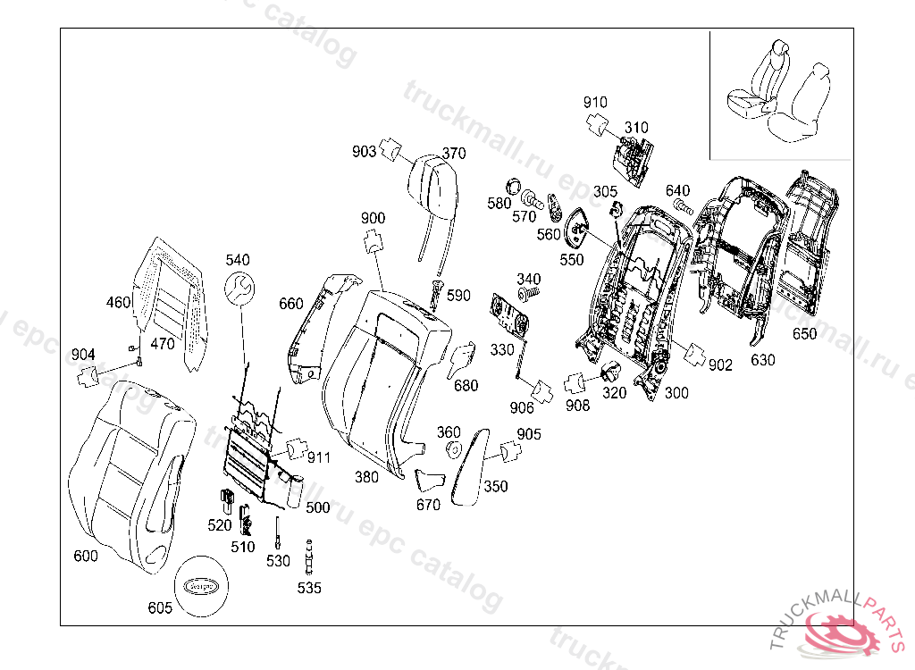 BACKREST FRAME ASSEMBLY , A 11921920091030 L 00307820091031 V 00040820091031