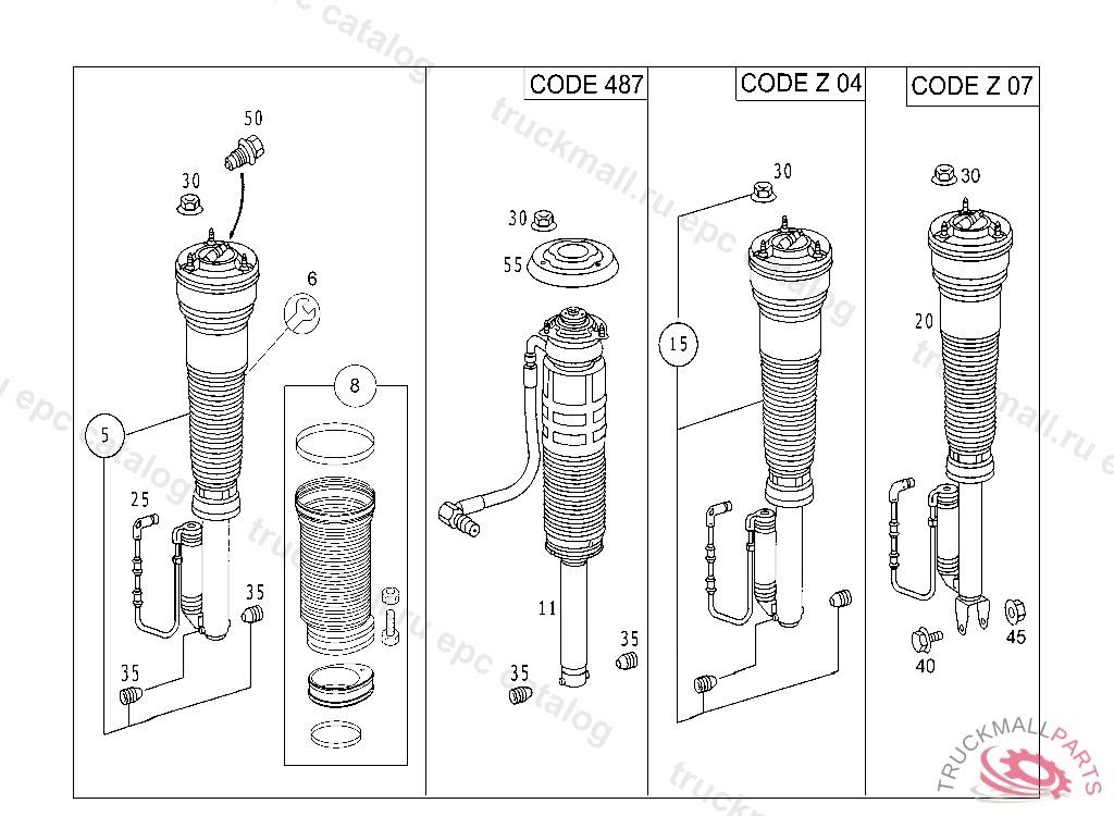 HYDROPNEUMATIC SPRING LEG FRONT RIGHT, A 02427920020930802 PART IS ONLY OR ALSO SUPPLIED AS RECONDITIONED PART FASTENING PARTS NOT PART OF DELIVERY SPEC., PLEASE ORDER SEPARATELY