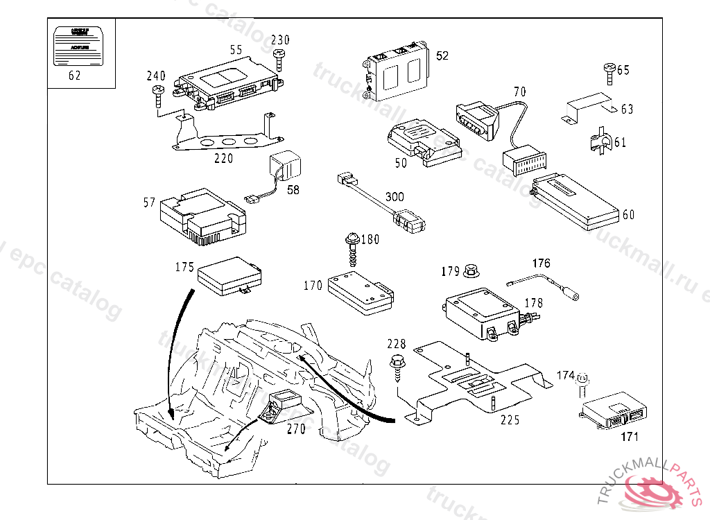 CTRL. UNIT EMERGENCY CALL TELE AID LCT, A 97499920070630 E 06000020080801 PART MUST BE CHECKED AFTER INSTALLATION FOR CURRENT FLASHWARE, Replaced By: A2218708726