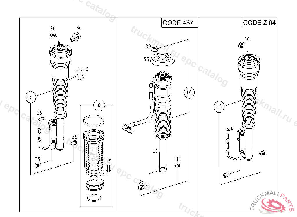 HYDROPNEUMATIC SPRING LEG FRONT RIGHT, A 02427920020930802 PART IS ONLY OR ALSO SUPPLIED AS RECONDITIONED PART FASTENING PARTS NOT PART OF DELIVERY SPEC., PLEASE ORDER SEPARATELY