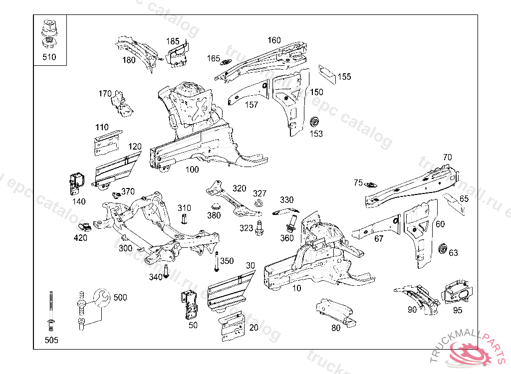 62 FRONT END, FRONT WALL - 030 WHEELHOUSE,FRONT SUBFRAME