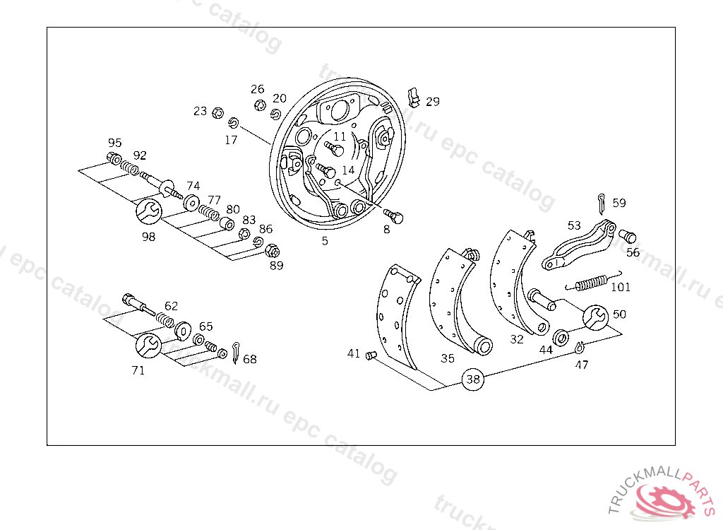 BRAKE ANCHOR PLATE RIGHT, UP TO CHASSIS 4 138143,FROM CHASSIS 4 138144 SEE 742.100 UNIT SPARE PARTS LIST