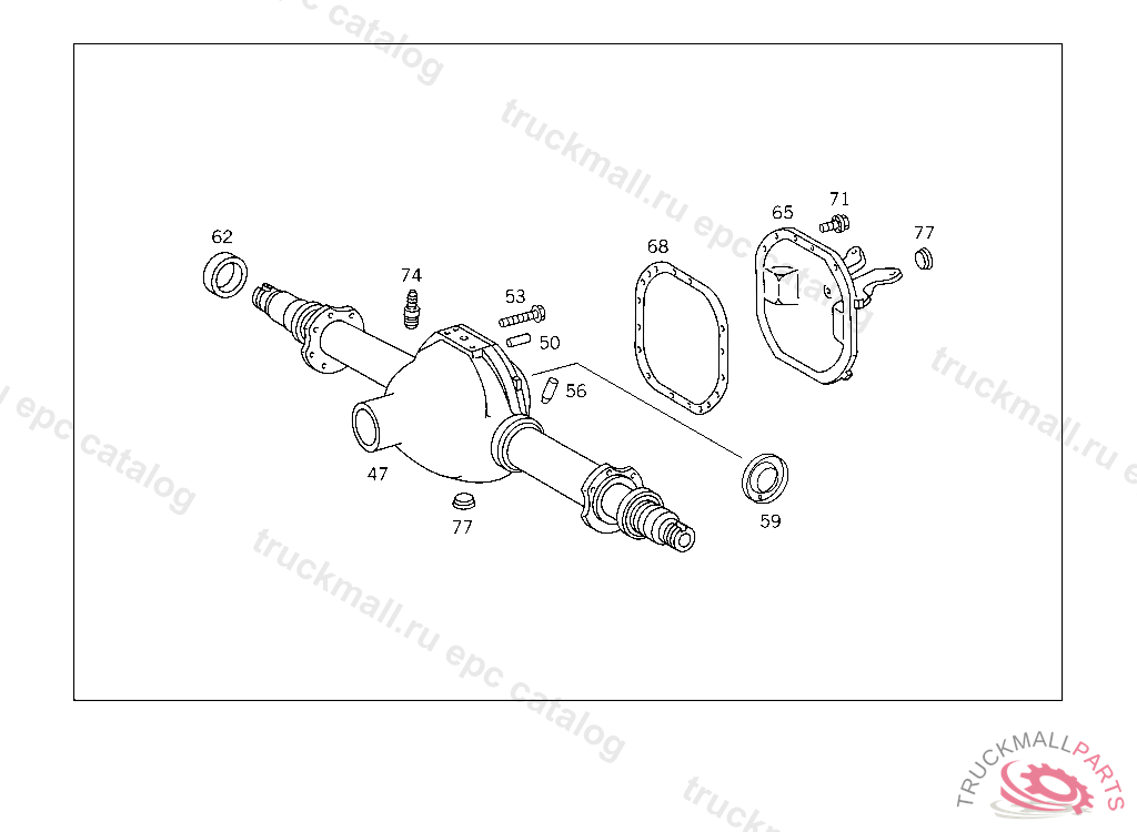 AXLE HOUSING WITH REAR AXLE TUBES AND DIFFERENTIAL CASE BEARING CAPS