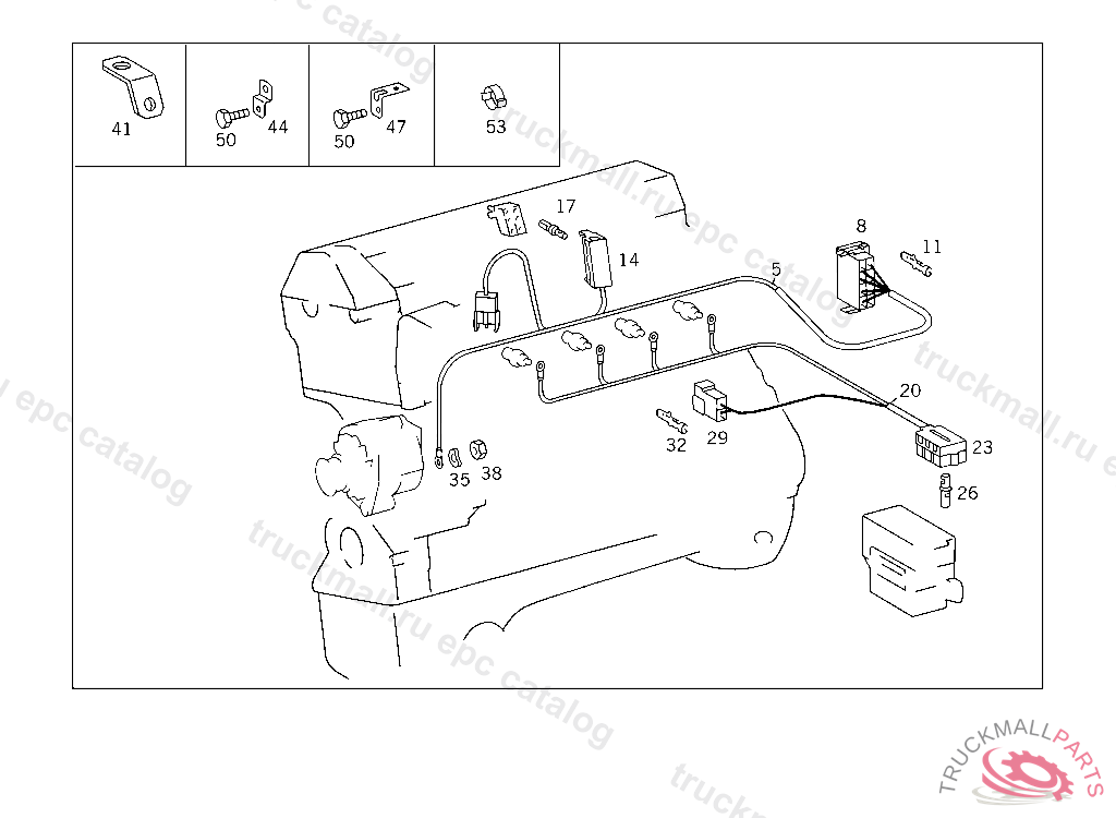 54 ELECTRICAL EQUIPMENT AND INSTRUMENTS - 127 ENGINE WIRING HARNESS AND CONNECTIONS OM 601 IL. 1