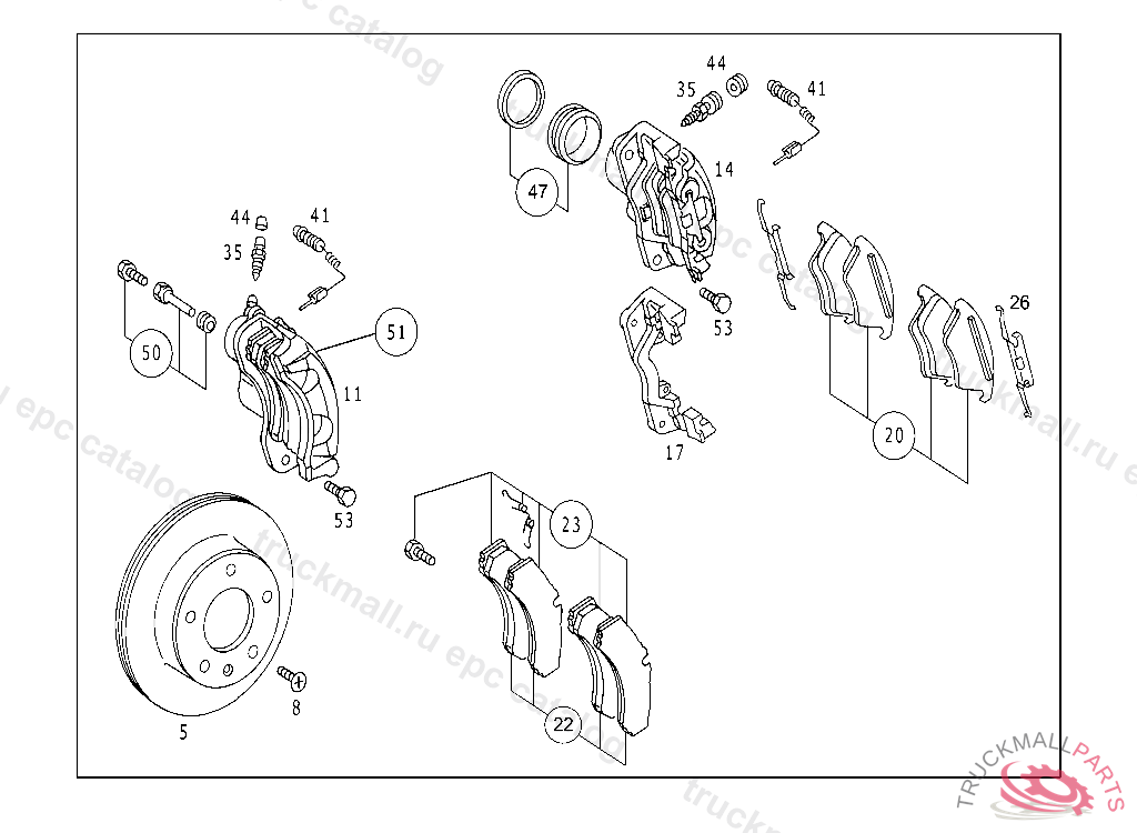 TS DISK BRAKE PAD PARTS KIT WITH SAFETY SCREW AND RETAINING SPRING WABCO, WHEN ORDERING,THE MAKE FITTED TO THE VEHICLE MUST BE DETERMINED: ONLY FOR ALL-WHEEL-DRIVE VEHICLE, MAKE OBERAIGNER WHEN SELLING BRAKE LININGS TO END USERS/DESK BUYERS THE A 203 005 25 99 IS TO BE HANDED OVER FREE OF CHARGE