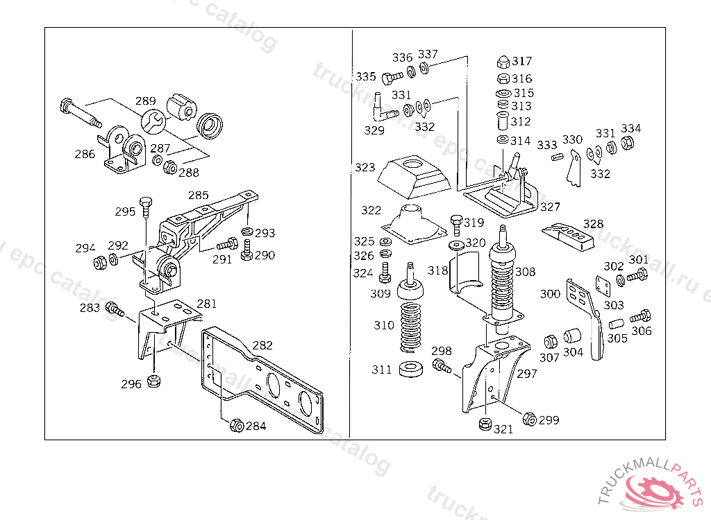 BRACKET VIBRATION ABSORBER TO CAB,RIGHT, FOR USE WITH SHORT VERSION OF MERCEDES-BENZ CAB5 157715