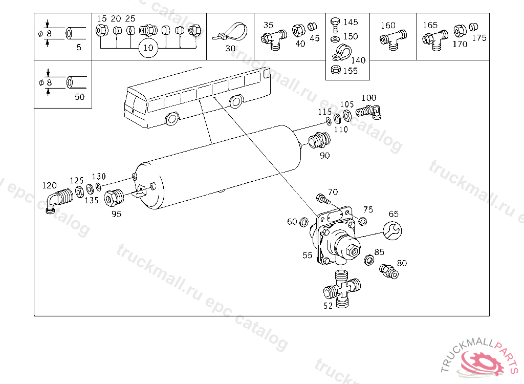 FITTING AIR RESERVOIR DRAIN, UP TO CHASSIS 007915 EXCEPT FOR CHASSIS 007869,007877,007881,007883-007885,007887-007890,007895-007901,007906-007911