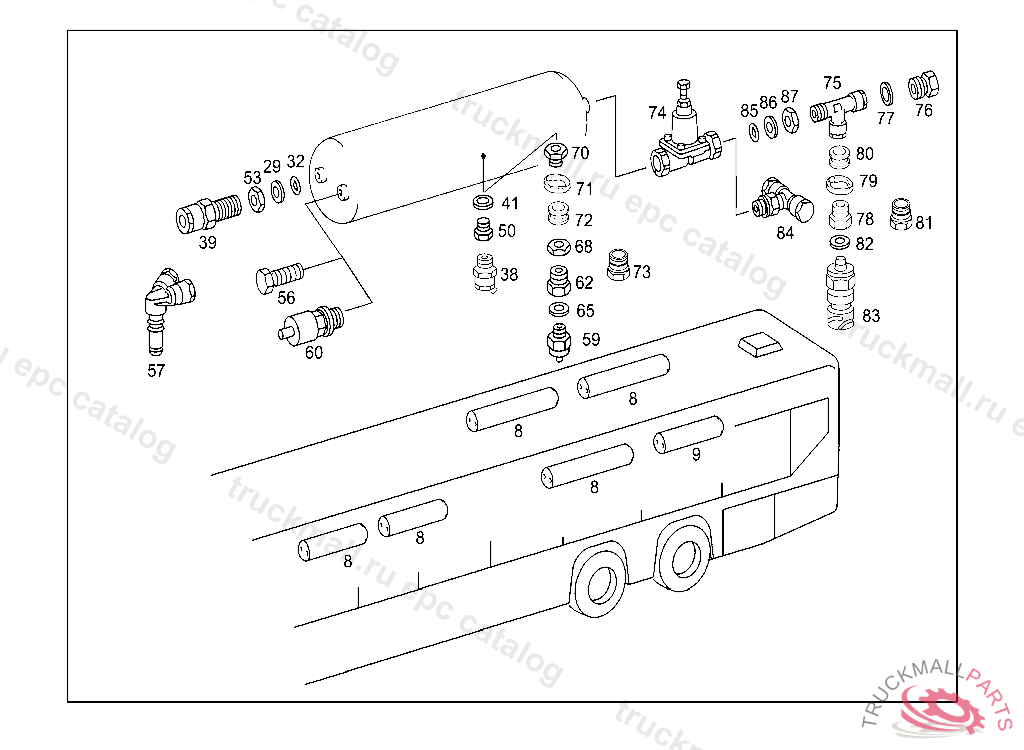FITTING AIR RESERVOIR DRAIN, UP TO CHASSIS 007915 EXCEPT FOR CHASSIS 007869,007877,007881,007883-007885,007887-007890,007895-007901,007906-007911