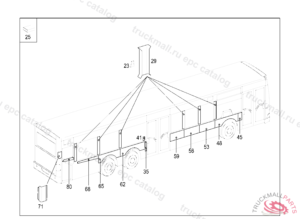 PANELLING FRONT CARRIAGE ARTICULATION, RIGHT, NO.7C01I.......I.......I I II