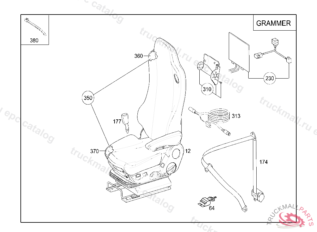UPHOLSTERY ASSEMBLY COMPLETE TO GRAMMER MSG 90.5P, DETERMINE COVER FABRIC VIA VEDOC "NFC 5117"