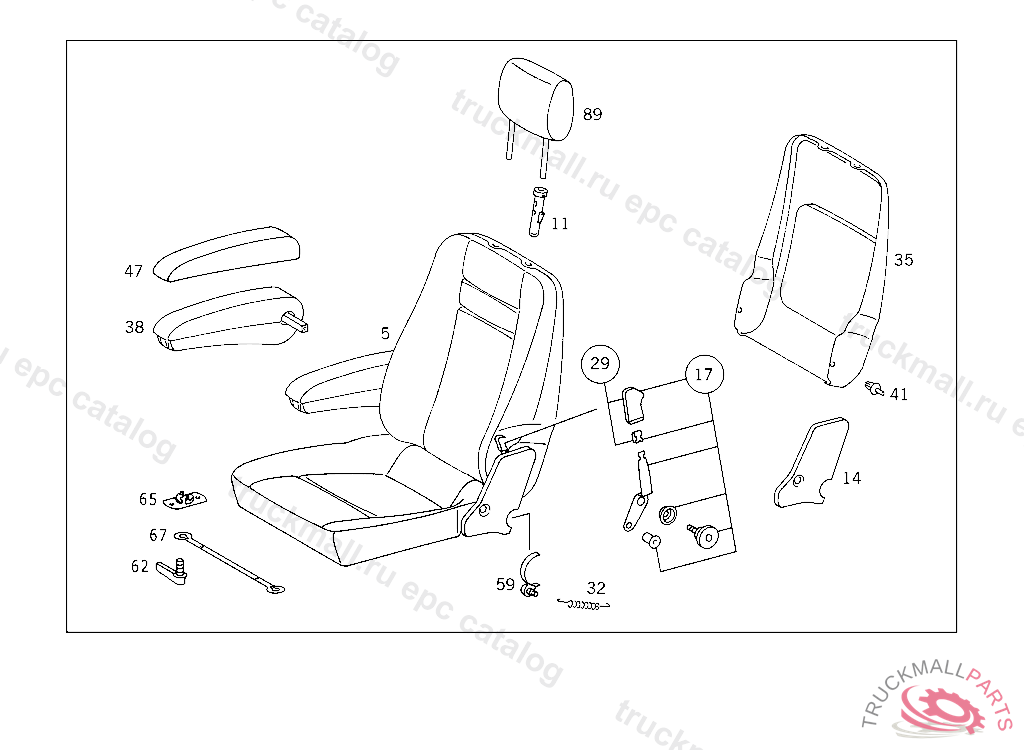 SEAT ELEMENT LESS ARMREST,102170 II NO.7C52I NO.7D27IIIII