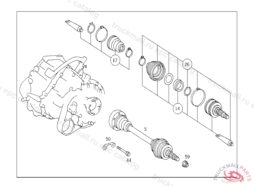BOOT (PARTS SET) TRANSMISSION END, DELIVER ADDITIONALLY ALSO: 1 X A 638 334 00 72